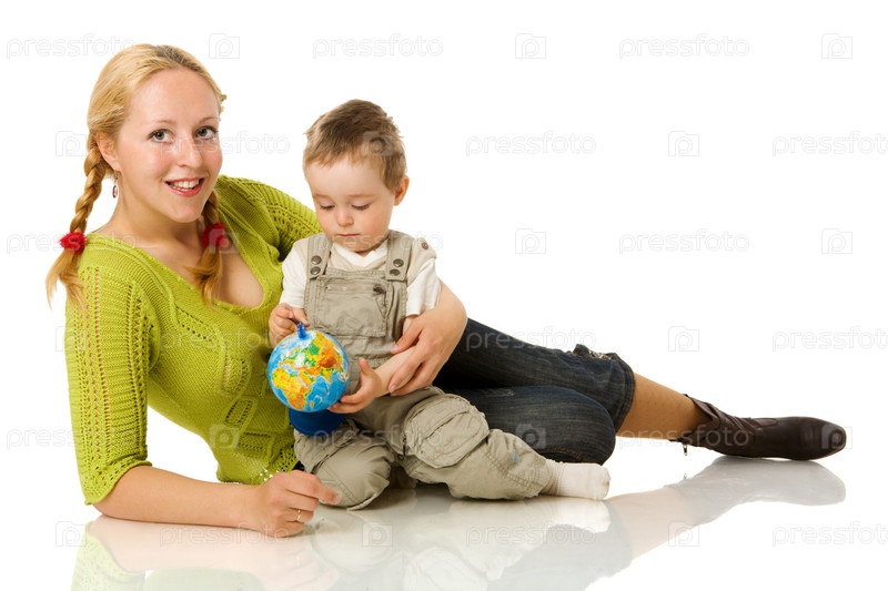 Счастливая мать с ребенком на белом фоне