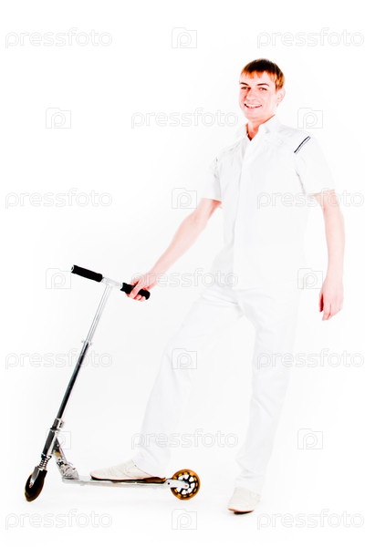 Молодой мужчина на самокате