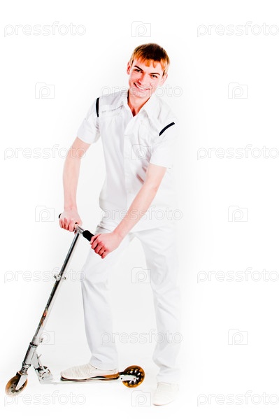 Молодой мужчина на самокате