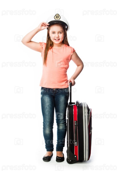 Красивая девочка с чемоданом
