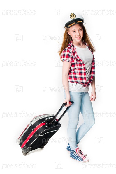 Красивая девочка с чемоданом