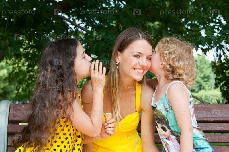 Девочки рассказывают своей маме на ухо секрет