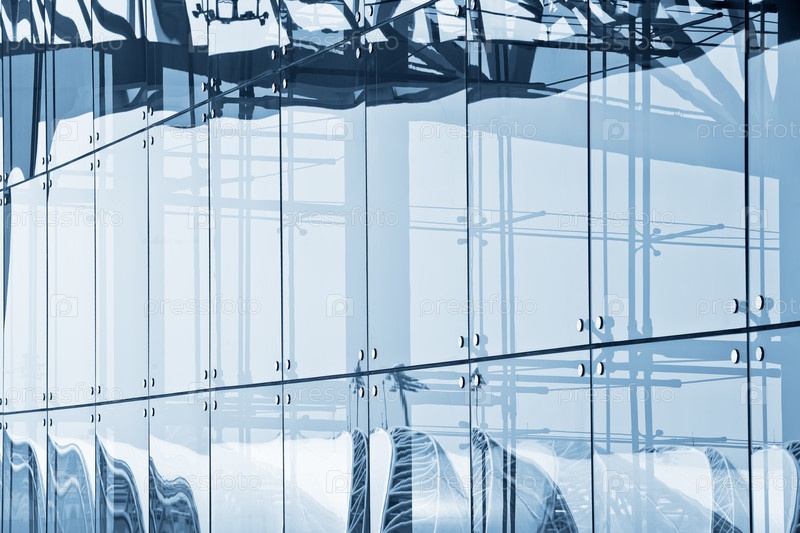 Стеклянная стена здания аэропорта отражает голубое небо