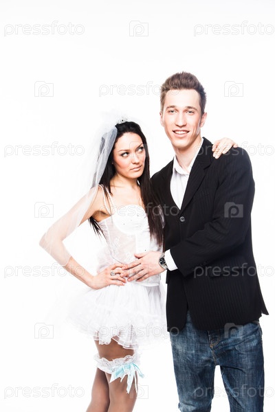 Пара молодых и красивых молодоженов