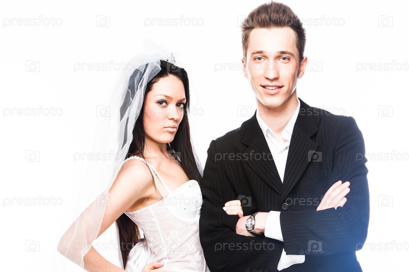Пара молодых и красивых молодоженов