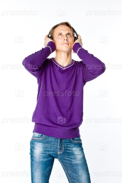 Мужчина слушает музыку в наушниках