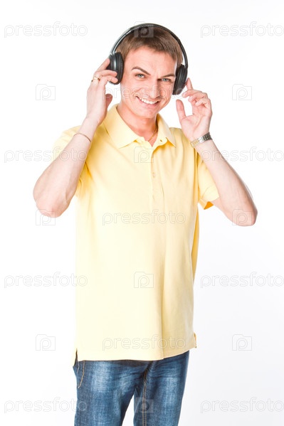 Мужчина слушает музыку в наушниках