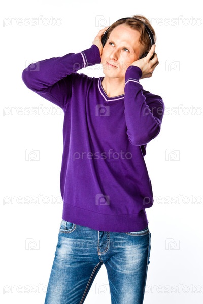 Мужчина слушает музыку в наушниках