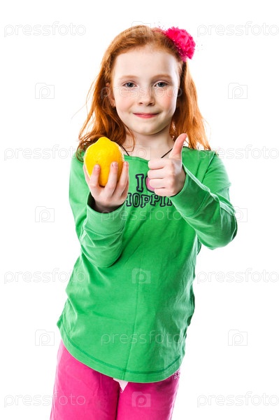 Красивая маленькая девочка с лимоном