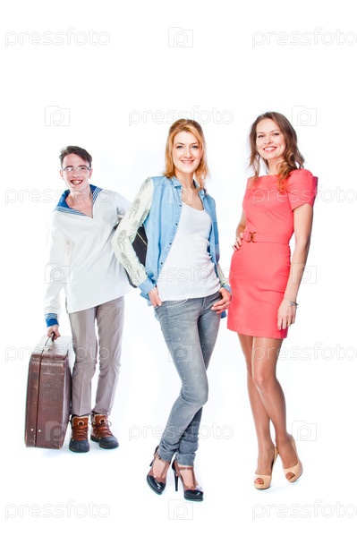 Две красивые женщины и носильщик чемоданов