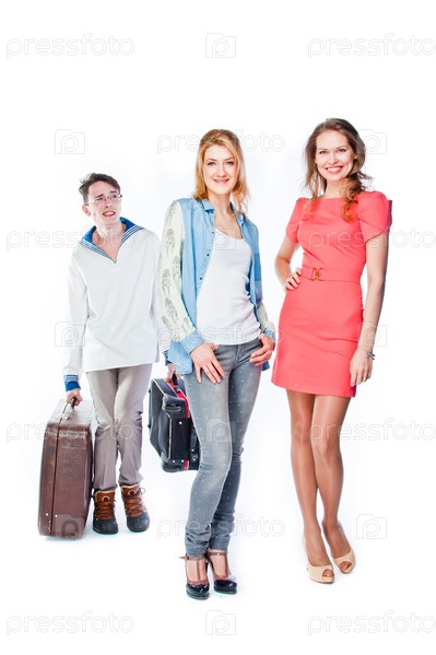 Две красивые женщины и носильщик чемоданов