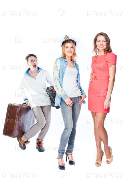 Две красивые женщины и носильщик чемоданов