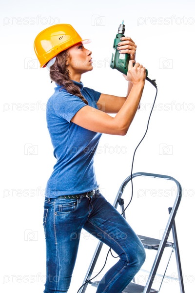 Молодая и красивая женщина строитель