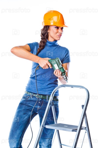Молодая и красивая женщина строитель