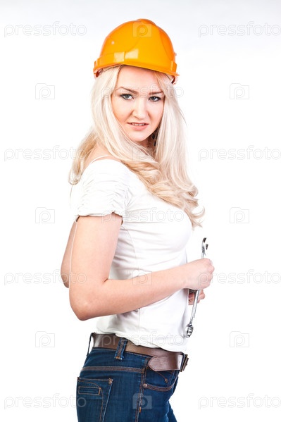 Молодая и красивая женщина строитель