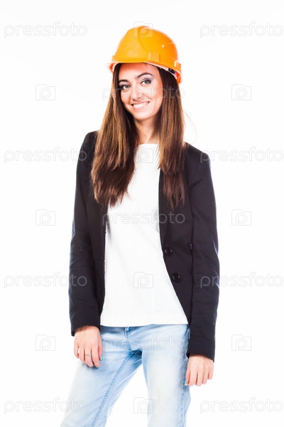 Молодая и красивая женщина строитель