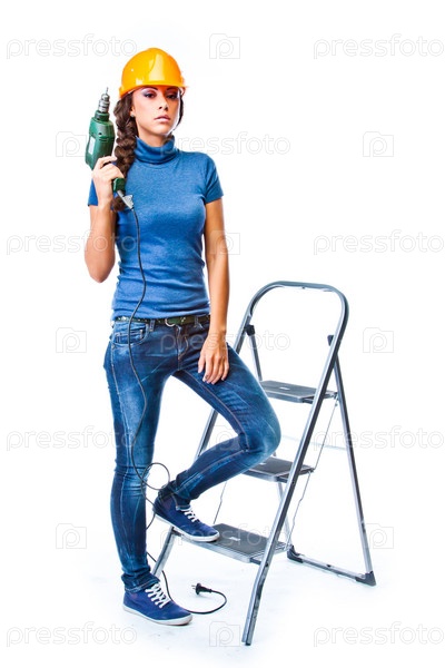 Молодая и красивая женщина строитель