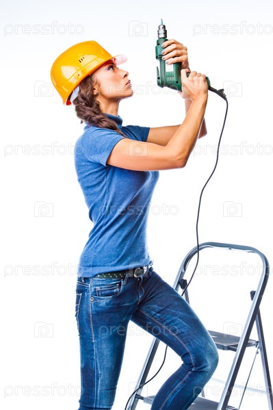 Молодая и красивая женщина строитель