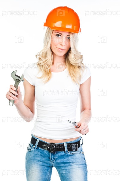 Молодая и красивая женщина строитель