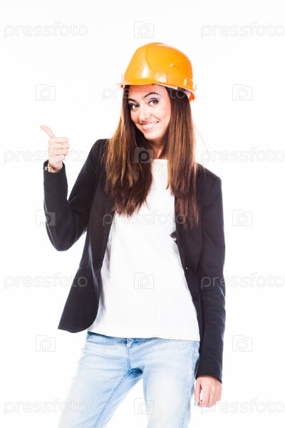 Молодая и красивая женщина-строитель