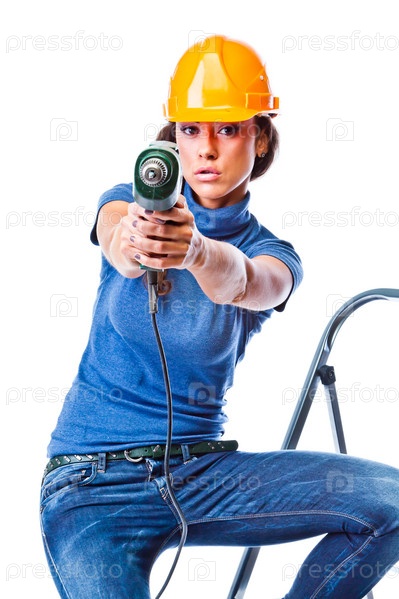 Молодая и красивая женщина строитель