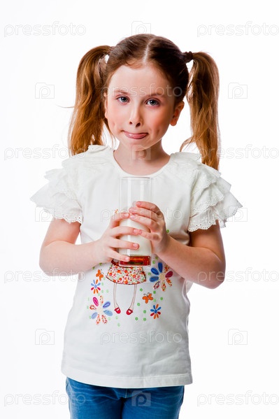 Красивая девочка со стаканом молока