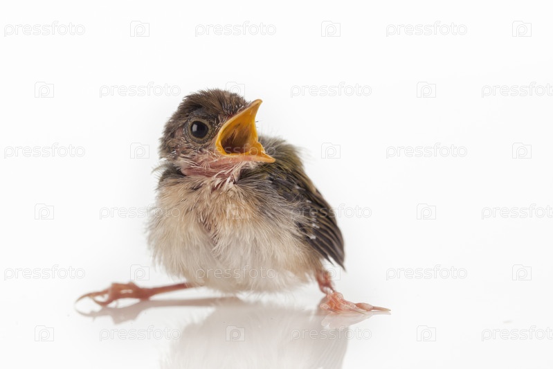 Кричащий птенец на белом фоне