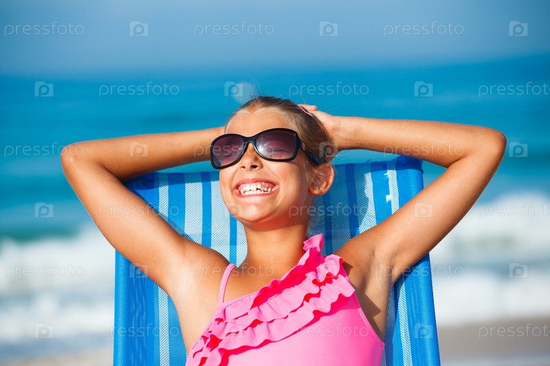 Девочка отдыхает в шезлонге