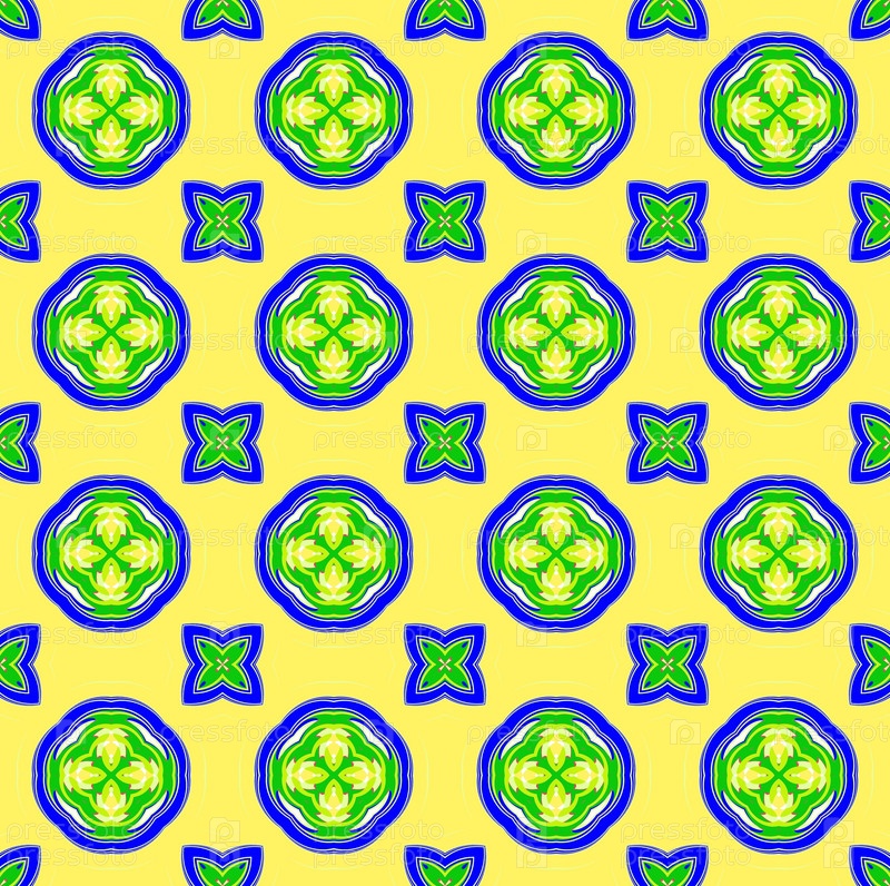 Яркий бесшовный узор на лимонно - желтом фоне
