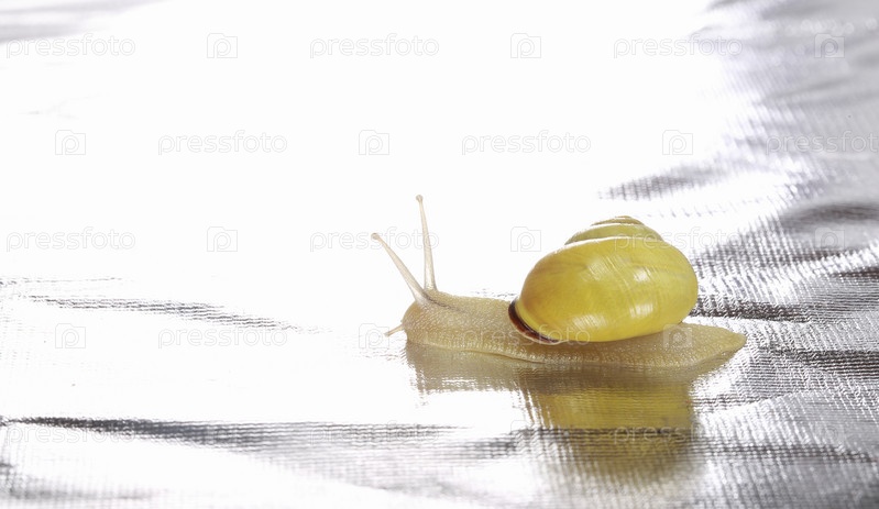 Улитка ползет по металлическому фону