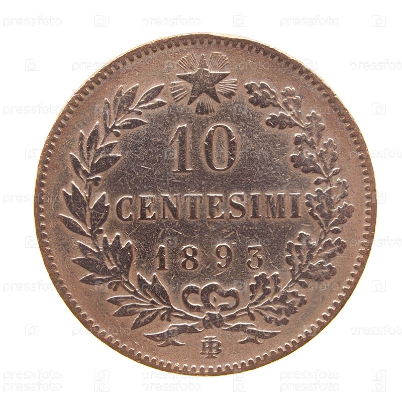 Древняя итальянская монета, изолированная на белом фоне