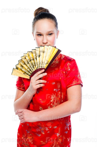 Молодая и красивая женщина в красном традиционном китайском платье