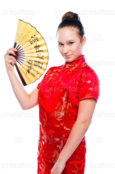 Молодая и красивая женщина в красном традиционном китайском платье