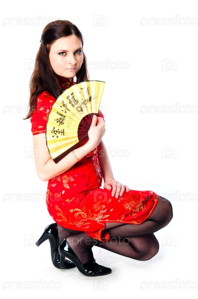 Молодая и красивая женщина в красном традиционном китайском платье