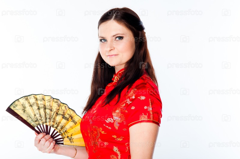 Молодая и красивая женщина в красном традиционном китайском платье