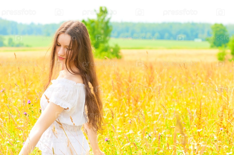 Женщина с длинными волосами в поле