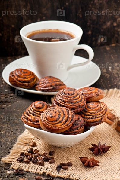 Чашка кофе и печенье с маком