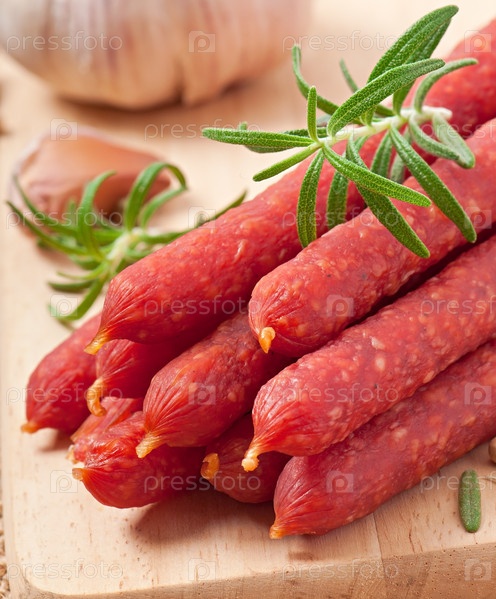 Копченая колбаса с розмарином, перцем и чесноком