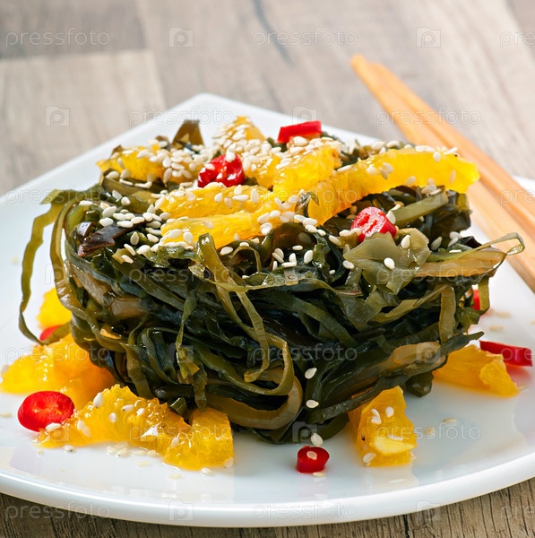 Салат из водорослей с апельсином и кунжутом