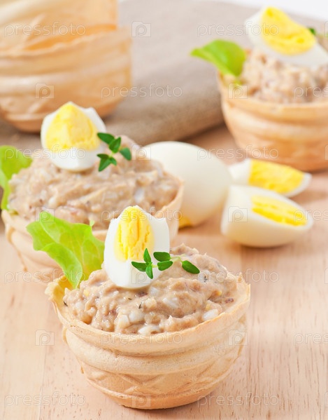 Корзиночки с рыбным паштетом и яйцом