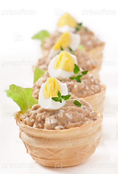 Корзиночки с рыбным паштетом и яйцом