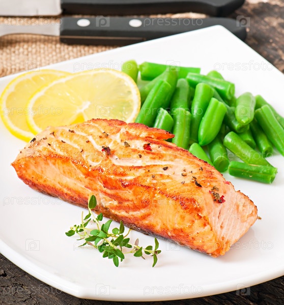 Лосось-гриль и зеленая фасоль