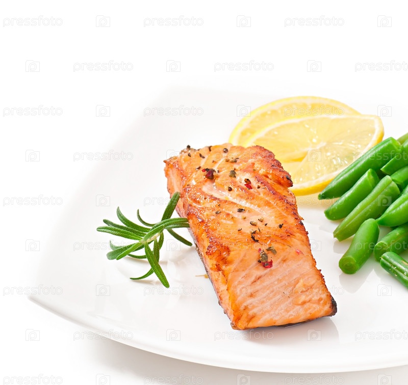 Лосось-гриль и зеленая фасоль