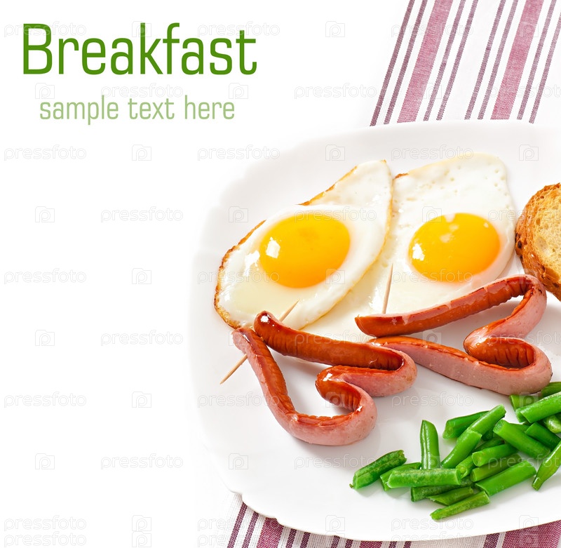 Яичница с колбасой и зеленой фасолью