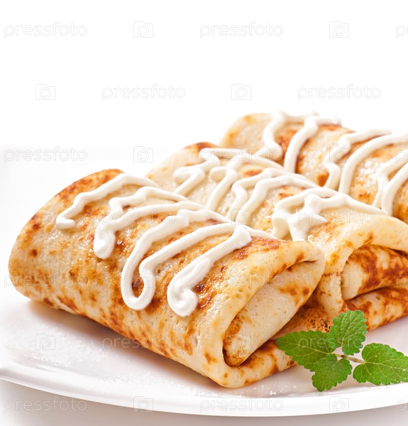 Блины, фаршированные творогом, со сметаной