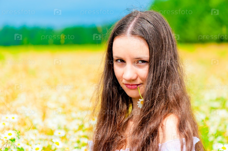Портрет красивой девушки с ромашкой