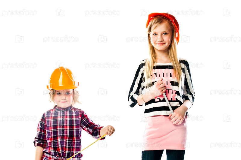 Две красивые девочки играют в строителей