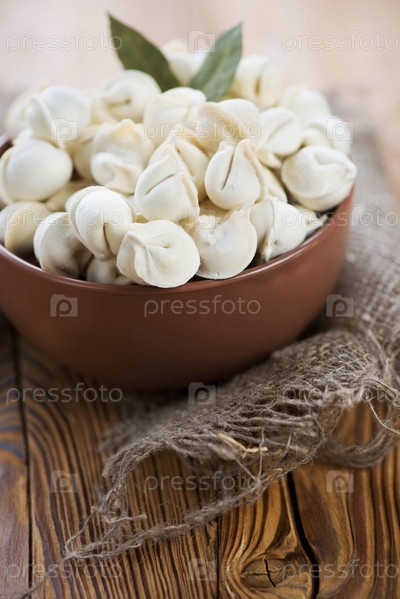 Сырые пельмени в миске