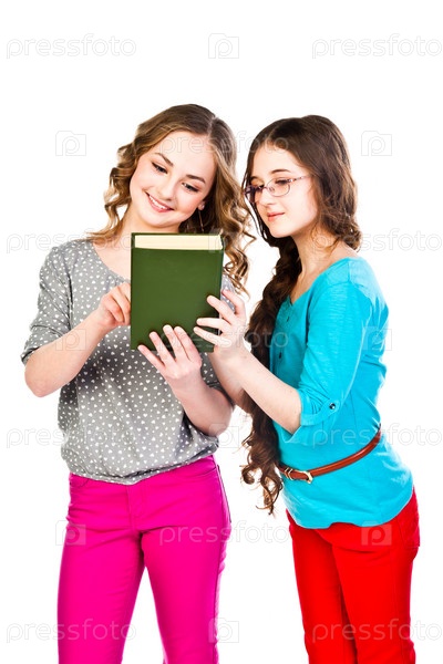 Две красивые девочки читают книги