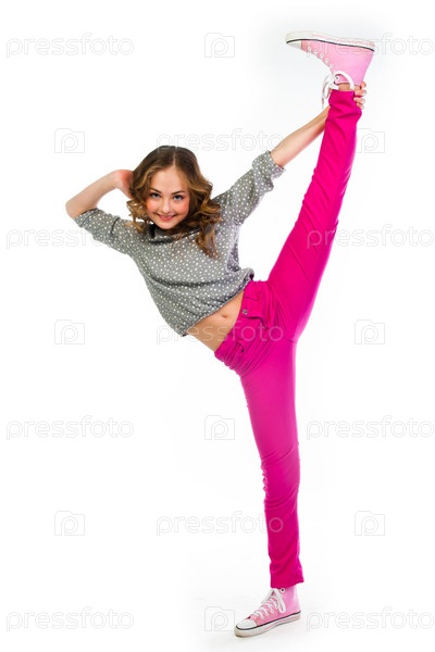 Красивая девочка выполняет акробатические упражнения